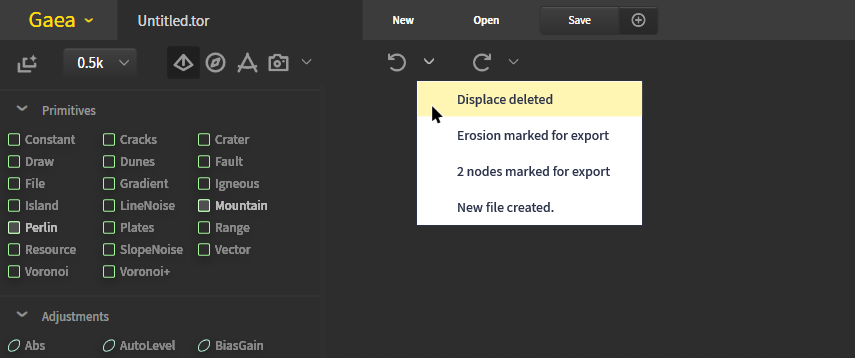 これは、以前のバージョンのGaeaで正常に機能しなかった重要な機能です。 そこで、システム全体を見直しました。 元に戻す/やり直しから予測可能な結果を楽しむことができ、両方のコマンドの履歴ドロップダウンも取得できます。