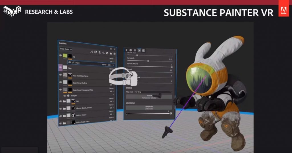 VRでペイントできるSubstance Painter in VRが紹介されました。動画では、ビューポートからVRモードオンにするだけでVRでのペイントが開始されています。