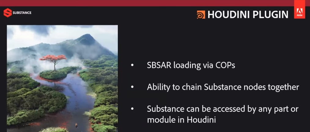 Houdiniの新しいSubstanceプラグインを使用すると、COP(Houdiniテクスチャリングコンテキスト)を介して物質アーカイブファイル(SBAR)をHoudiniにロードできます。COPコンテキストでサブスタンスを統合することにより、レンダリングコンテキストだけに限定されるのではなく、パイプラインのすべての部分でサブスタンスを使用できるようになります。