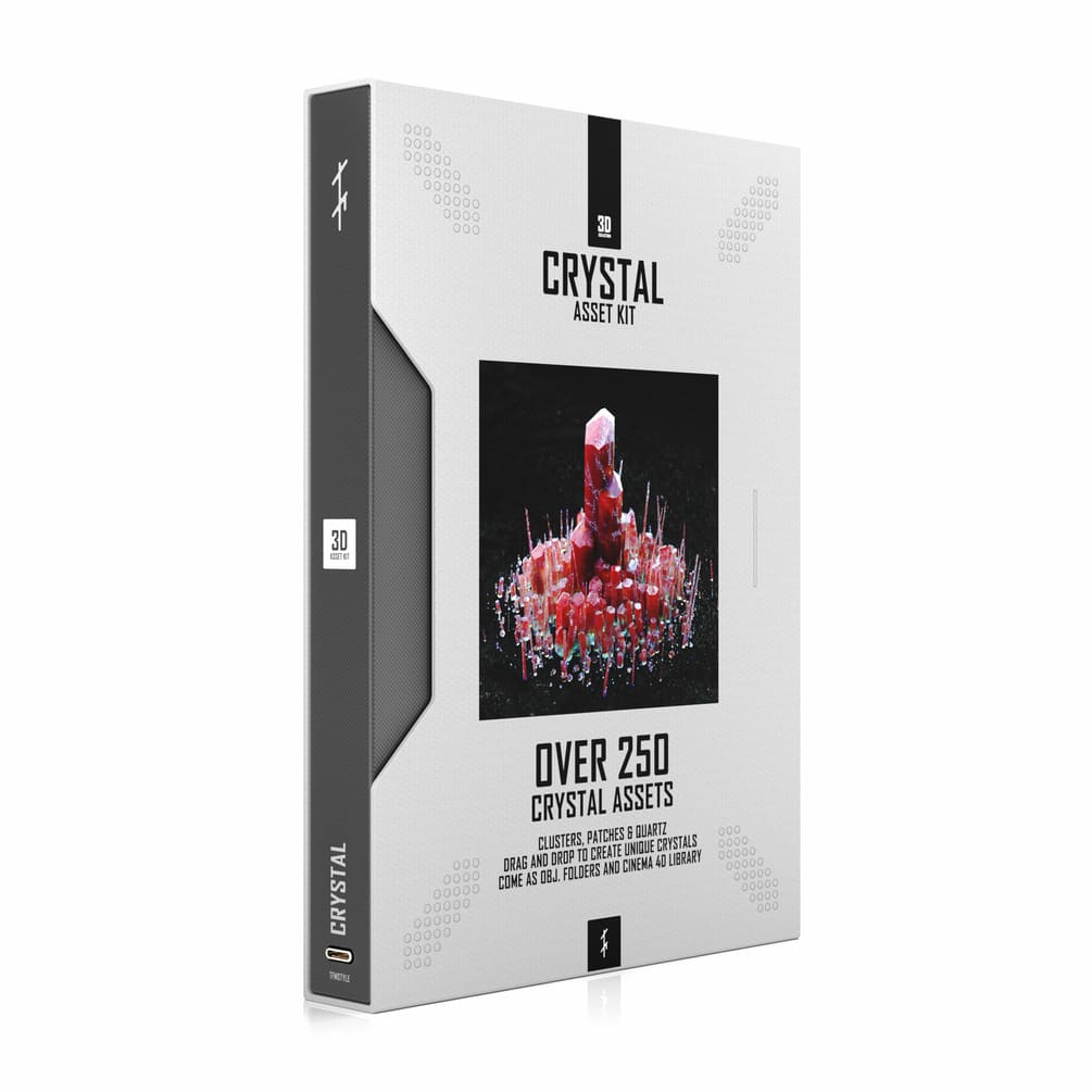 クリスタルアセットキットは、アセットをドラッグ&ドロップしたり、パッチをミックス&マッチさせたり、クリスタルクラスターを作成するのに役に立ちます。アセットライブラリは、objファイルが含まれている、Cinema4D以外のソフトウェアでも使用することができます。