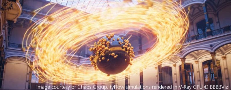 さらに、アーティストはパーティクルシミュレーションのための人気の高い3ds MaxプラグインであるtyFlowを使用してレンダリングできるようになり、V-Ray GPUのスピードが利用できます。