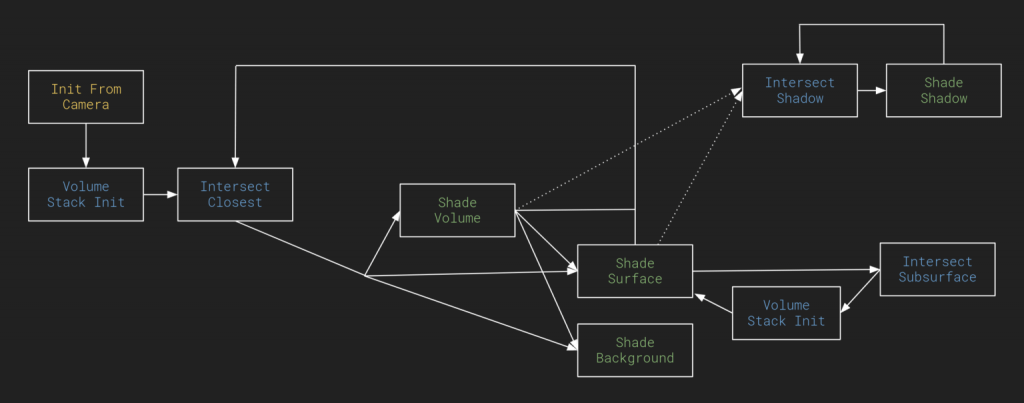 最初の目標は、この新しいアーキテクチャを検証することで、そのために、新しいGPUカーネルのプロトタイプが実装され、ビューポートレンダリングとバッチレンダリングのための新しいスケジューリングアルゴリズムが導入されました。現在では、ベンチマークシーンのいくつかをレンダリングするのに十分な機能を備えています。