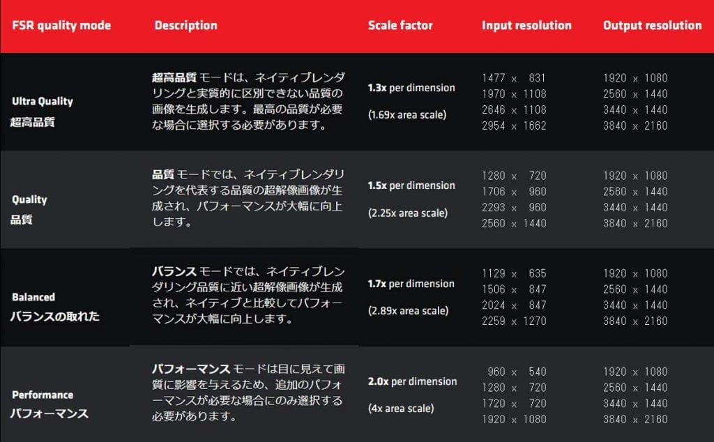AMD FidelityFX Super Resolution(FSR)についてより詳しい情報はこちらから