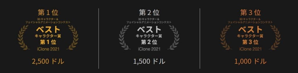- 受賞者はフィーチャーコンテンツ開発者に選ばれたり、Reallusion の委託プロジェクトに参加するなど、CC / iClone 3D コミュニティに作品を提供して収益を上げる機会があるかもしれません。 詳細はこちら