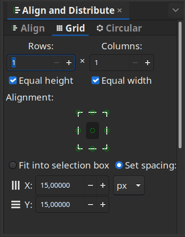この新しいライブパスエフェクト(LPE)は、水平と垂直の間隔の変更、拡大縮小と回転の補間などを行うことができます。