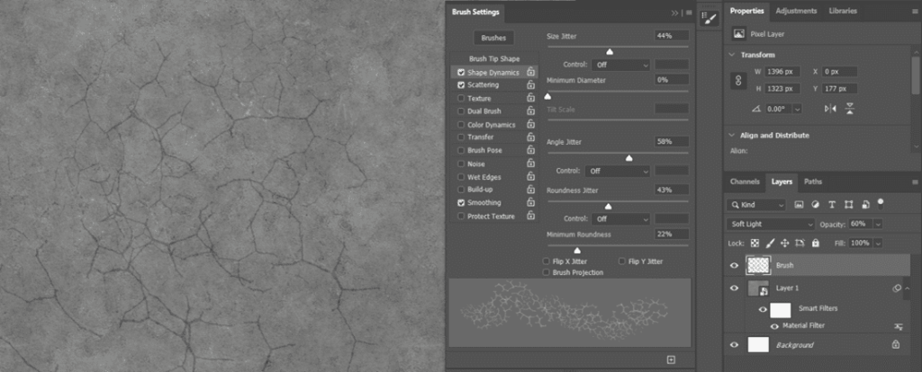 マテリアルは、Photoshop 内でフォトリアリズムを高めたり、抽象的なデジタル作品に使用することができます。Photoshop の既存のパターンと同じように考えることはできますが、無制限のバリエーションを可能にするコントロールと、編集および適用に既存の Photoshop パターンより優れたワークフローを備えています。
