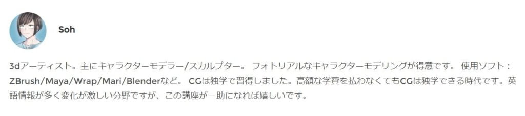 対象の学習者は、3DCGに興味がある方、初めてZBrushを使う方などの初心者が想定されており、本などのテキストでの学習に挫折した方、スキルアップしたい方におすすめの動画講座です。
