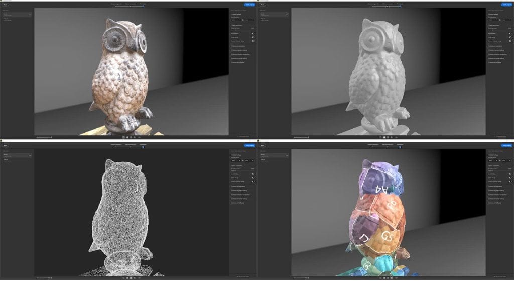 3Dオブジェクトの再構築が完了したら、自動デシメーション、UVアンラップ、ベイク処理で結果を最適化できます。このポストプロセスにより、メッシュやテクスチャをニーズや使用方法に合わせて最適化することが可能です。
