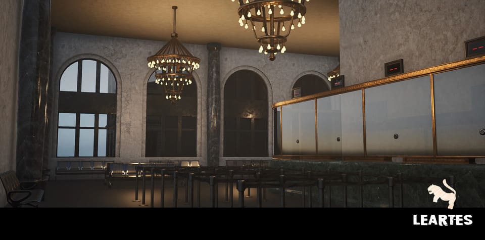 銀行の建物/インテリアが含まれた環境パックです。銀行建物も含まれているので、簡単にインテリアのサイズや外観を変更することができます。壁/地面/ドア/天井や小道具を使って、簡単にカスタマイズすることが可能です。