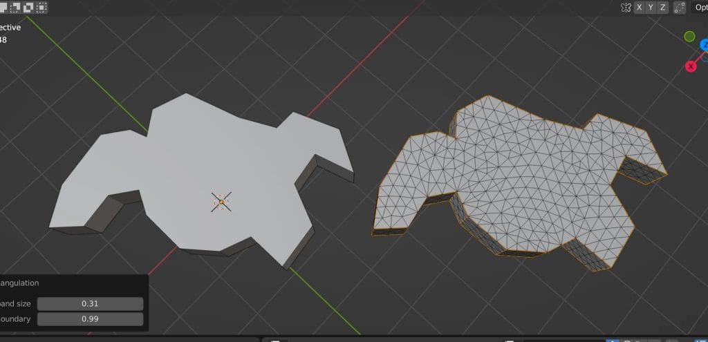 このツールは、任意のn-gonの面を三角ポリゴン化するためのツールです。Blenderには内蔵の三角形化ツールがありますが、それは既存の頂点をつなぐだけです。