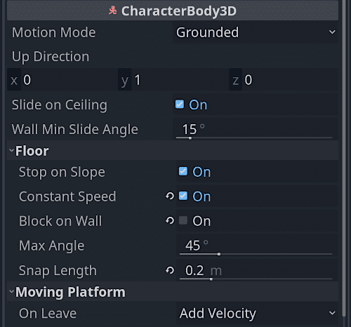 - 新しいCharacterBodyノードが、古いキネマティックボディに代わって、2Dと3Dでの挙動を強化するようになりました。これにより、柔軟性のある新しい設定可能なプロパティで、高度なキャラクターコントローラをすぐに使用できます。