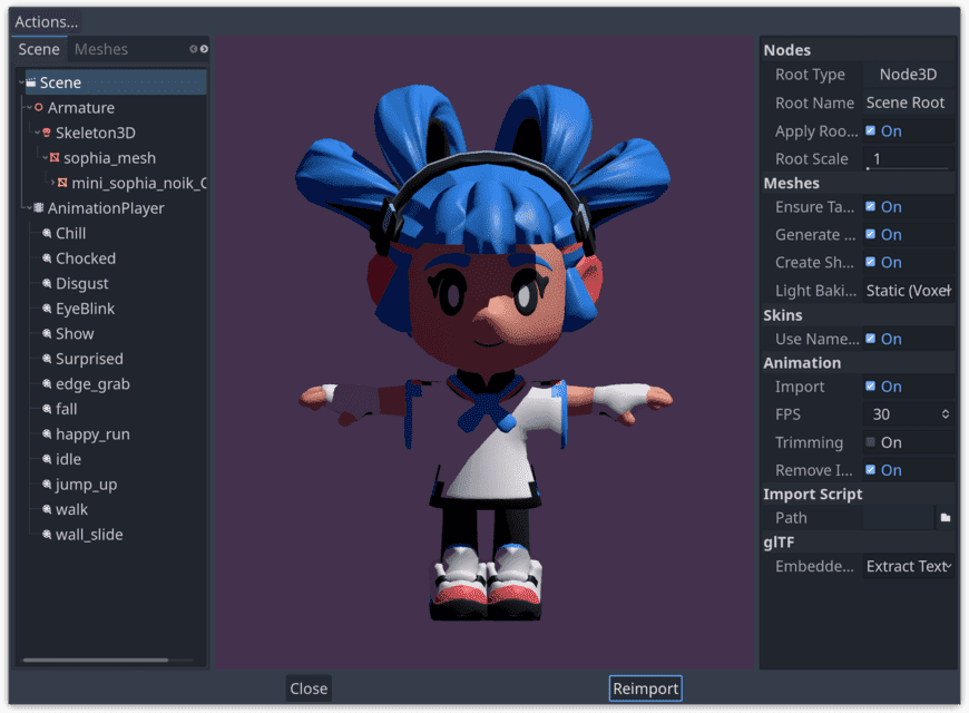 アニメーションは、個々のリソースやアニメーション プレーヤー ノードに保存されるのではなく、アニメーション ライブラリに保存されるようになりました。これにより、プロジェクト内でアニメーションを簡単に再利用できるようになり、アニメーションだけを含むシーンをインポートできるようになりました。