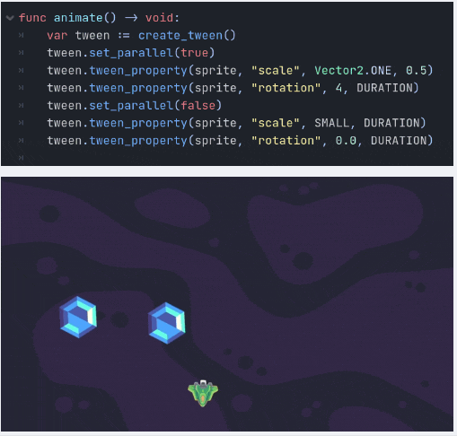 新しいTweenシステムによって、Tweenアニメーションをより簡単に設定できるようになりました。複雑なアニメーションを構成できるように、APIが書き直されています。ノードを作成する必要がなくなり、スタッキング、オーバーラップ、イージングなど、より汎用性の高い新機能が搭載されています。