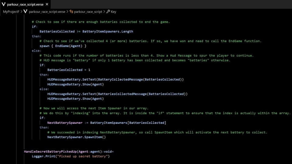 Verseは、UEFNの開発者やクリエイターが、既存のFortnite Creativeツールやチームと一緒にスクリプトを作成できるようにすることを目的としています。最初のリリースでは、Verseは、デバイスの操作や連鎖などの強力なカスタマイズ機能と、新しいゲームロジックを簡単に作成する機能を提供します。