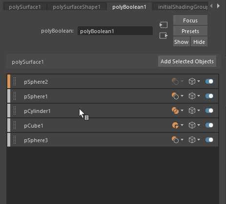 ブール演算スタックの新しいオプションを使用して、ブール演算入力オブジェクトをすばやく複製できます。