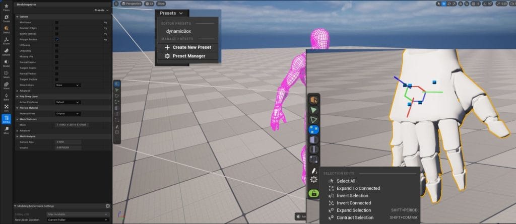 アセットを開発するアーティストは、効率的なモデリング、スカルプト、UV編集、テクスチャリングのワークフローを必要とします。これらのワークフローは、単にいくつかの異なるツールを特定の順序でクリックするだけではなく、マウスクリックの回数を減らし、カーソルの移動を最小限に抑え、アーティストに正確なフィードバックを提供するためには、あらゆるタイプのインタラクションを考慮する必要があります。この目的を念頭に置いて、UE 5.3では以下の点が改善されました: