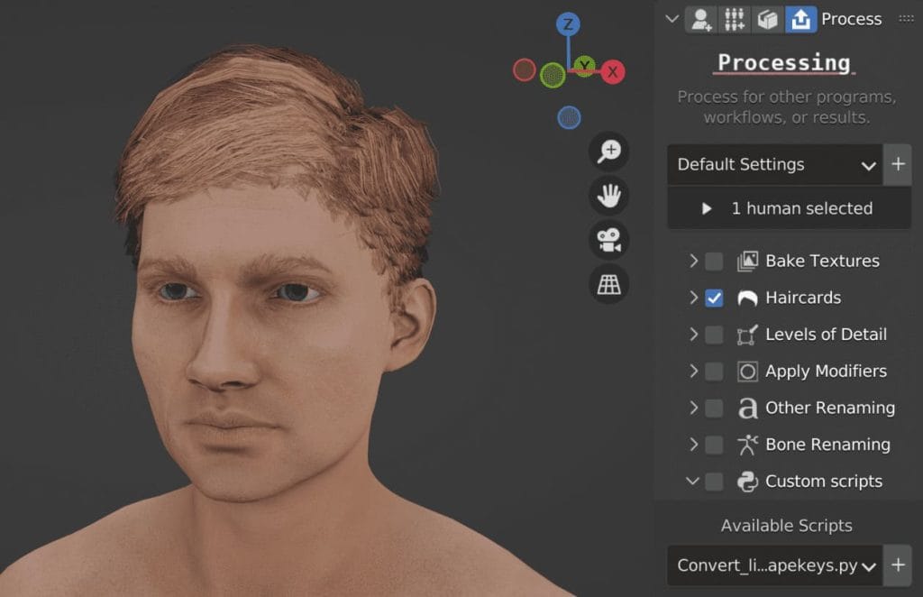 パーティクルヘアーをサポートしていないソフトウェアで人間を使いたい場合やパーティクルヘアーが重すぎると感じる人のためにヘアカードの自動生成が追加されました。