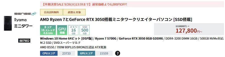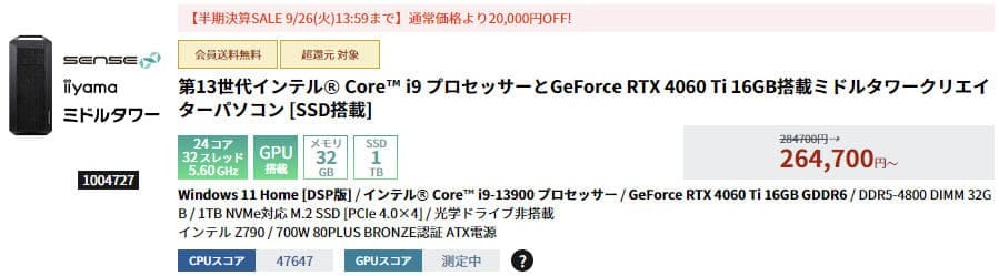 また、並行して開催中の台数限定 クリエイターPC 大特価祭も開催中です。