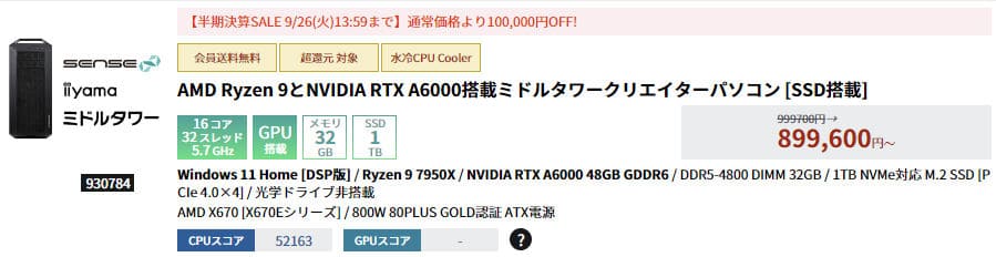 セール対象BTOパソコンには、プロ向けのNVIDIA RTX A6000搭載PCやGeForce RTX 40 シリーズグラフィックスカード搭載PCがラインナップされています。