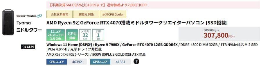 パソコン工房・グッドウィルを運営する株式会社ユニットコムは、パソコン工房 WEB サイトにて開催されている『半期決算セール』の紹介です。