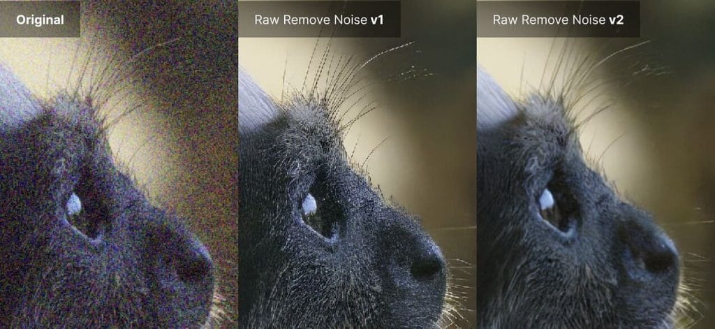 Topaz Labs によると、内部テストでは、新しいRaw Remove Noise v2モデルは、高ISO画像に対して、他のノイズ除去ソフト(Lightroom、DxO、Topaz v1を含む)よりも圧倒的に優れた結果が得られたとしています。違いをご覧になりたい方はこちらのサンプルファイルが提供されています。