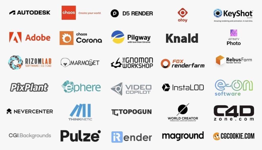 本コンテストは、3D界最高の企業によって支えられています。主な賞品に加え、全員に副賞を獲得するチャンスがあります。