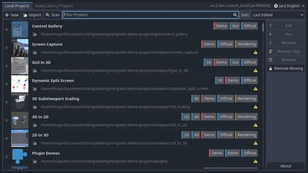 プロジェクト マネージャーは、ユーザーが Godot の利用を開始するときに最初に目にするものであるため、常に改善する必要であると同時に、慎重に扱われる必要がありますが、結果として、キー コントロールの一般的な配置とプロジェクト インポート ワークフローを改善することになりました ( GH-50674、GH-51478 )。これらの変更についてはフィードバックが募集されています。