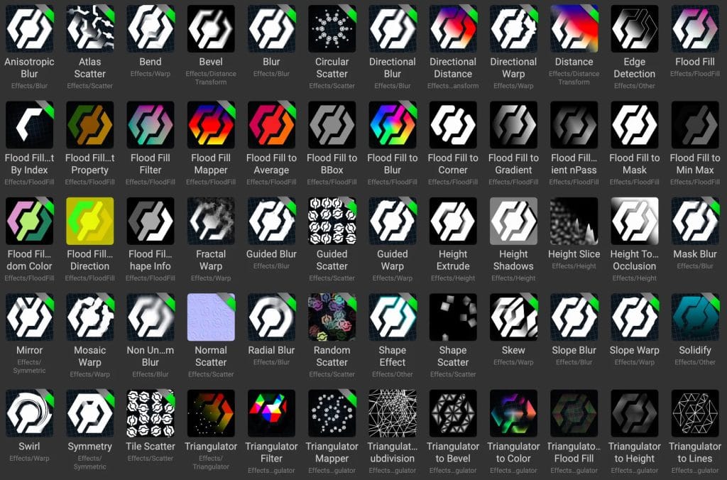 スキャン処理、ドープシートのアニメーション可能なグラフ、マテリアルワークフロー、メイクシームレスツール、スタイル転送、画像合成、ノードのお気に入り、パッケージベースのワークフロー、AxFサポート、グランジライブラリ、色空間管理、ノイズとパターン、キャンバスとビューポートのトーンマッピング、ビューポートギズモ、C++ SDK、ネイティブノードプラグイン、PBRメッシュレンダーノード、プロシージャルモデリング、ベイクノード、コメント、 ノードショートカット、要素式、カスタマイズ可能なエクスポートテンプレート、GPUベイク、レイヤーマテリアル、強力なノードウィジェット、ベジェ曲線、メッシュ修正ライブラリ、マテリアルエフェクト、メッシュベースのノイズ、キャンバススクリーンショット、ビューポートデザインレビュー、マテリアルテンプレート、InstaMATノード、ポイントクラウド操作、AIベースのスタイル転送とスーパーレゾリューション、PBRテクスチャアトラスなどなど!