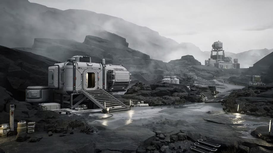 モジュール式の屋外 SF 建築、インテリア アセット、岩、崖、草、沼地などの自然要素が含まれたアセットパックです。パックには合計320個のメッシュが含まれています。