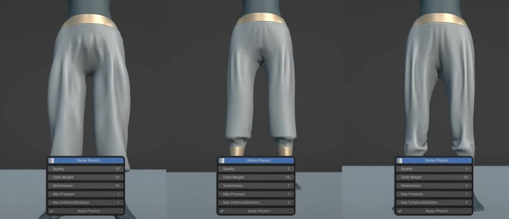 布の主要な物理設定、重さ、伸縮性、品質などを調整できるパネルが用意されるようになりました。