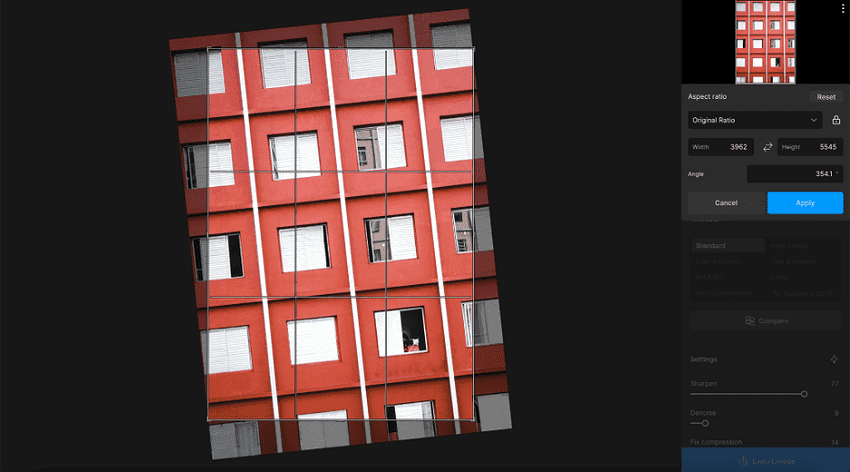 Gigapixelの切り抜き(Crop)ツールが拡張され、画像を回転させて、完璧な垂直または水平ラインを作成できるようになりました。