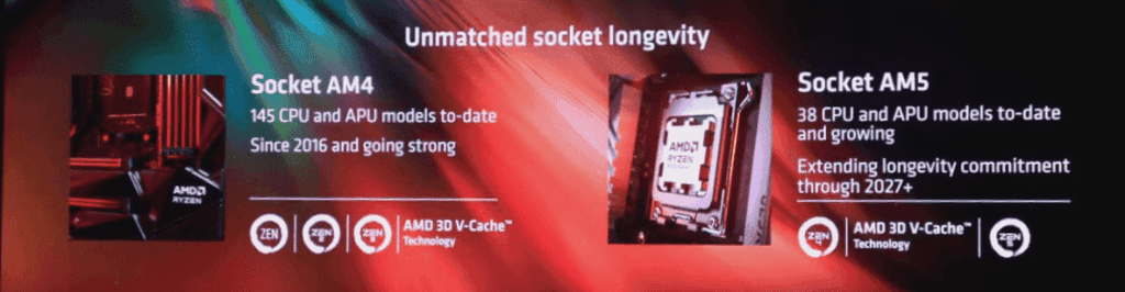 また、AMD Ryzen 9000シリーズ デスクトップ プロセッサに対応したSocket AM5マザーボードファミリーには、2つの新しいチップセットが搭載されています。新しいAMD X870EおよびX870チップセットは、AMD Ryzen 9000シリーズデスクトップ プロセッサーとシームレスに統合できるように設計されており、PCIe® 5.0、DDR5、USB4、WIFI7などの最新テクノロジーに対応。Socket AM5プラットフォームは、2027年以降もサポートされ、長持ちするように設計されています。