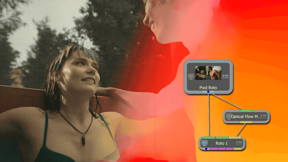 Optical Flow MLノードは、機械学習を使用して動きベクトルを生成し、フレーム間のピクセル単位の動きを素早く推定します。このノードにより、ロトスコープアーティストは、シェイプ、オブジェクト、またはポイントトラッカーをトラッキングする際に、大幅な時間短縮が可能になります。また、新しいオートキーフレームツールも含まれており、フローデータと手動アニメーションを併用することで、ロトタスクを高速化します。