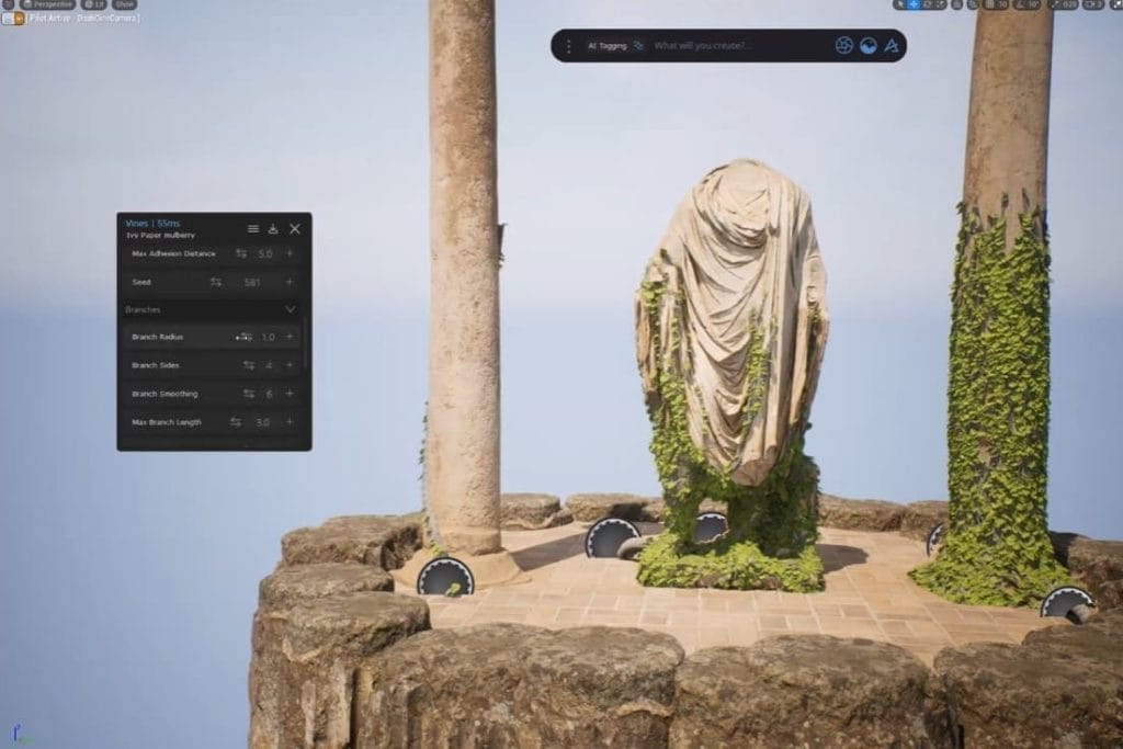 このリリースでは、UE5.4のサポート、新しいつる植物ツール、AIタグ付けの改善、ブレンドマテリアル、ライトプロファイル用の膨大なIESライブラリ、ランドスケープレイヤーマスクなど多くのアップデートが行われています。