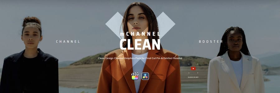 mChannel Clean DV — Clear Design Channel Graphics Pack for DaVinci Resolve — MotionVFX