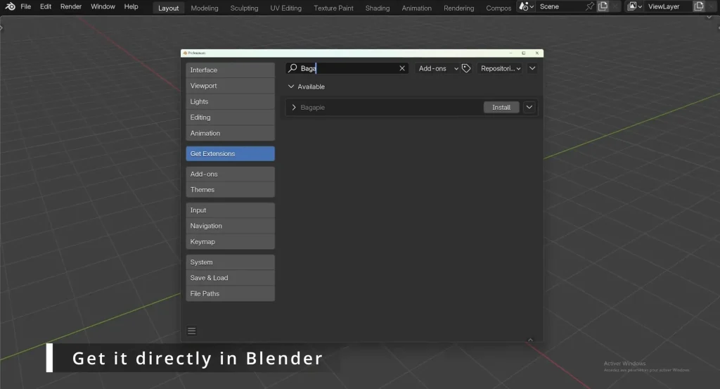 BagaPieがBlender Extensions プラットフォームで公開されたことにより、Blenderのエクステンションタブから簡単にインストールすることができるようになりました。