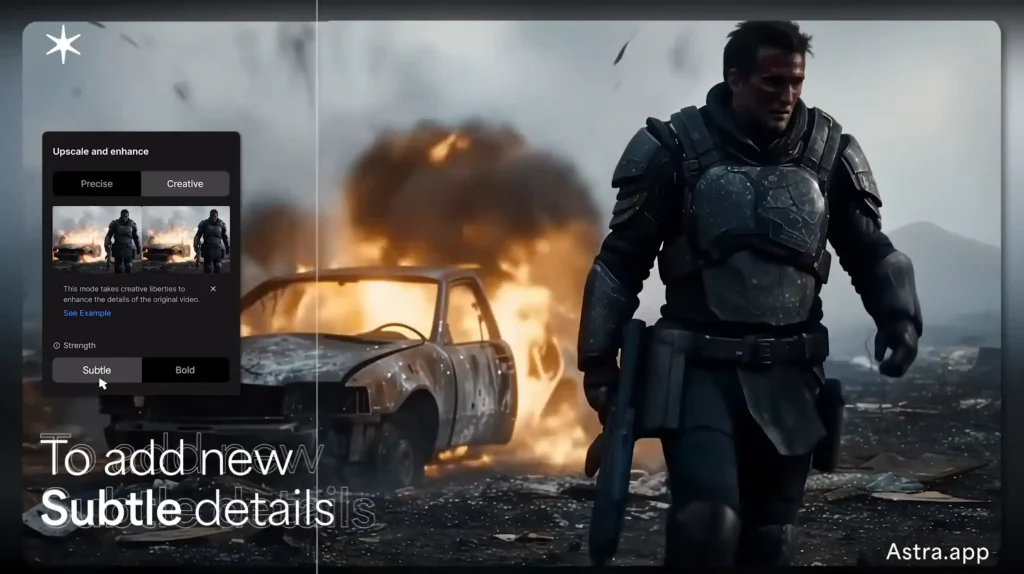 今回発表された「Astra」は、AI動画を最大4Kの鮮明な解像度にアップスケール(高画質化)することに特化した、クリエイティブ アップスケーラーです。