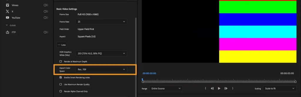 - 書き出しのカラースペースの選択:DNxHR、DNxHD および PNG の書き出しで、書き出し設定/ビデオ/詳細から手動でカラースペースを選択できるようになりました。