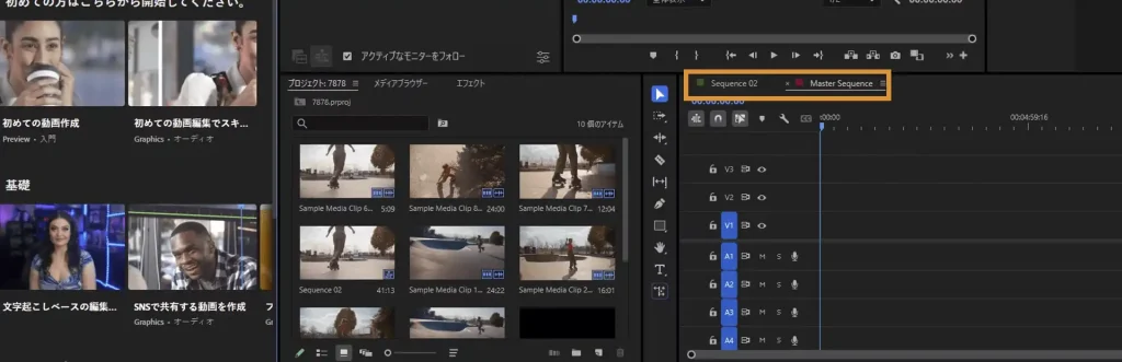 新機能「シーケンスタブのラベルカラー」は、各シーケンスのタブに任意の色を設定できるようにする機能で、プロジェクト内の様々なシーケンスを視覚的に区別できます。