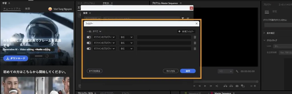 大規模なプロジェクトでは、特定のクリップやアセットを探すだけで多くの時間を費やすことがあります。今回のアップデートで搭載された「高度なフィルター機能」は、この課題を解決する機能で、高度なフィルタリングを使用して特定のクリップやアセットをすばやく見つけることができます。