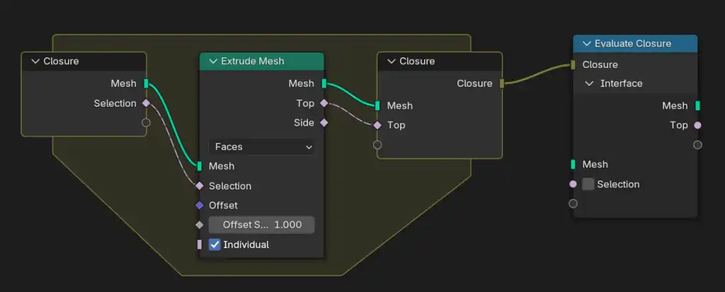 一方、クロージャが複数の場所で評価される場合、Blenderは現状、基本的にランダムに1つを選択します。この挙動に対する詳細な制御機能は、今後追加が検討されています。