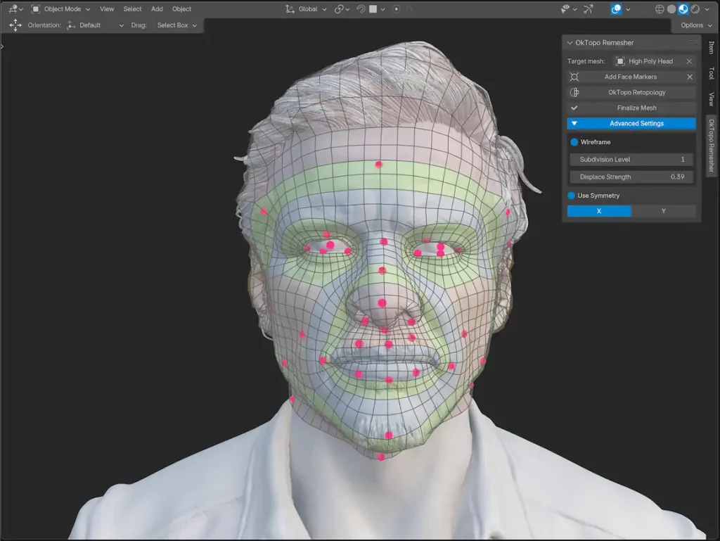 OkTopo Remesherは、頭部の自動リトポロジーを行うためのBlenderアドオンです。
