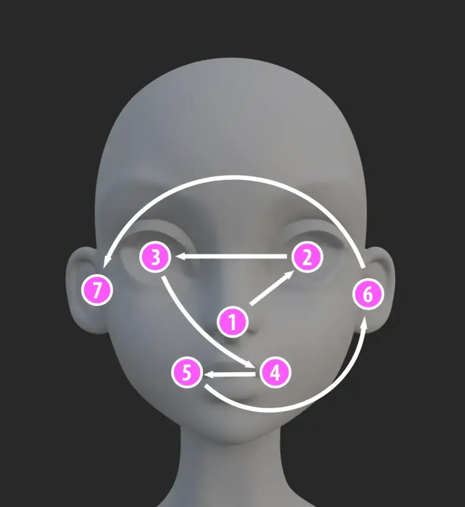いくつかのスマートマーカーを配置するだけで、OkTopoが即座にクリーンな四角形ポリゴンベースの頭部メッシュを生成することができます。