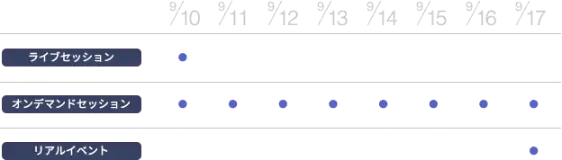 | 開催期間 | オンラインライブセッション: 2025年9月10日(水)17:00~18:00 オンデマンドセッション: 2025年9月10日(水)10:00~9月17日(水)23:00 リアルイベント: 2025年9月17日(水)15:00~19:30 |