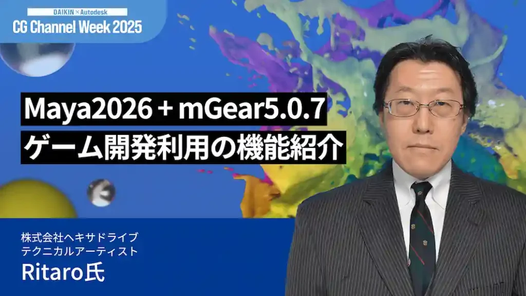 ゲーム開発を前提に、Maya2026と最新のmGear 5.0.7の機能を紹介。モーションキャプチャーデータの活用法やUE5.4との連携も解説されます。