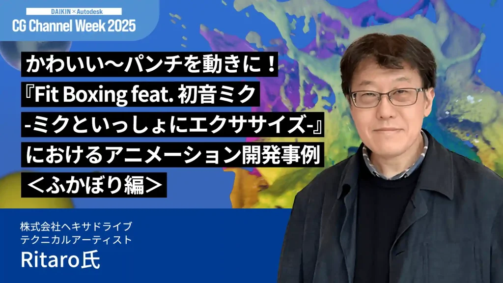 人気ゲーム『Fit Boxing feat. 初音ミク』を題材に、初音ミクをはじめとするキャラクターのアニメーション開発事例が詳しく解説されます。