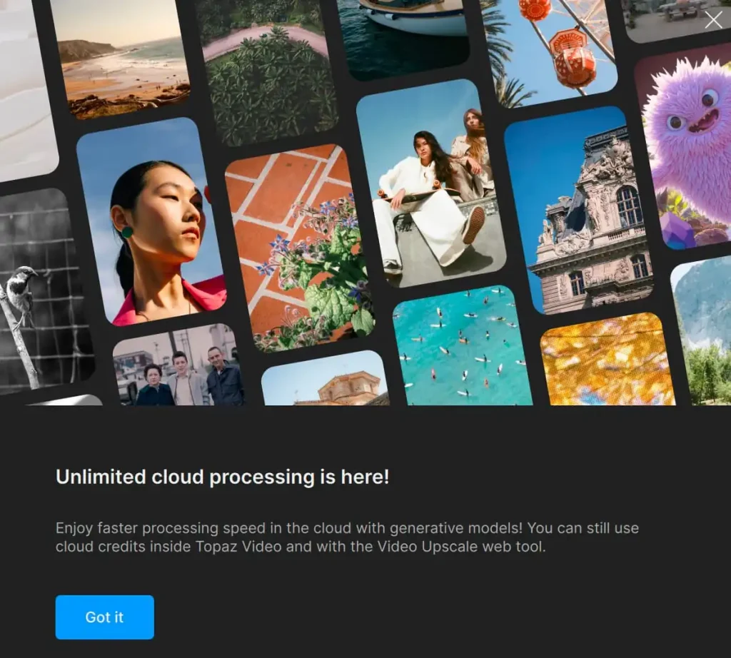 無制限の画像クラウドレンダリングを実行する際に、UIに大きな変更はありません。Gigapixel AI v8.4.3とは異なり、クラウドレンダーボタンにクレジットコストは表示されなくなります。また、ユーザープロファイルにクレジット数が表示されることもありません。