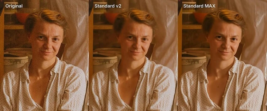 Standard Maxは、より広範なデバイスでスムーズに動作するように設計されているため、以前の生成モデルのような重い処理要求なしでプロレベルの結果を得ることができます。ディテールの強調を改善し、細かくリアルなテクスチャを生成して、写真を生き返らせるのに役立ちます。