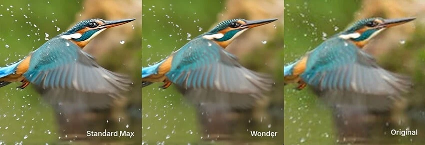 Wonderモデルは過度なシャープニングなしで、より自然な出力品質を維持でき、他のモデルと比較して背景のアーティファクトが少ない結果が得られます。