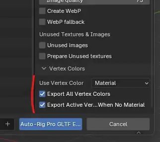 ゲームエンジンなどで広く使われるGLTF形式でのエクスポート時に、頂点カラーの設定が公開され、より細かな制御が可能になりました。